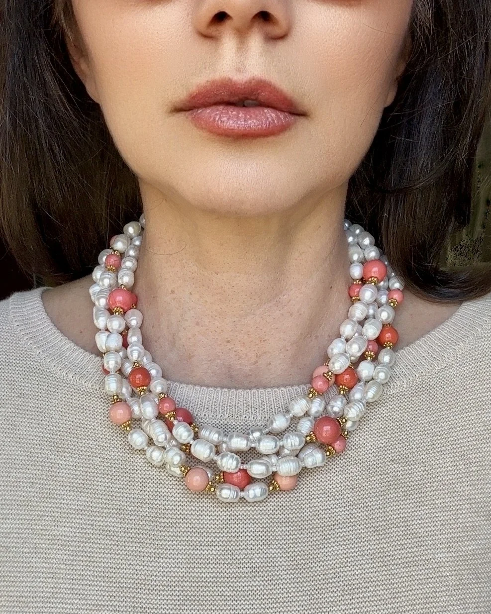 Categories: All Necklaces Earrings Earrings Pierced Bracelets All / Necklaces Bold Gold Chain Link Necklace With Coral Color Stones (Multiple Lengths ) from $475.00 Select Length Short Long Add To Cart Added! Three Strand Coral with Detachable Coral/Gold Mosaic Pendant Necklace $1,300.00 Add To Cart Added! Three Stand Coral Color Necklace with Detachable Pendant/Brooch $945.00 Add To Cart Added! Bright Coral Color Single Strand Necklace With Gold Scroll Bead $315.00 Coral Bright Red Add To Cart Added! Three Strand Coral Color Draped Necklace $625.00 Add To Cart Added! Coral Color Necklace with Ornamented Filigree Beads $625.00 Add To Cart Added! Coral Color Everyday Necklace with Cabochon Signature Beads $345.00 Add To Cart Added! Coral And Gold Mosaic Pendant Necklace ( With Or Without Detachable Enhancer) from $765.00 Select With Or Without Detachable Enhancer Pendant Attached To Bail With Detachable Spring Hinge Enhancer Add To Cart Added! Lite Coral On Gold Detachable Brooch / Pendant Necklace $400.00 Add To Cart Added! Fresh Water Pearl and Coral Color Twist Necklace $725.00 Add To Cart Added!