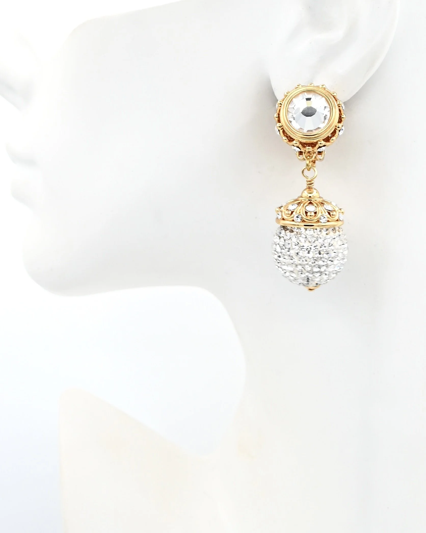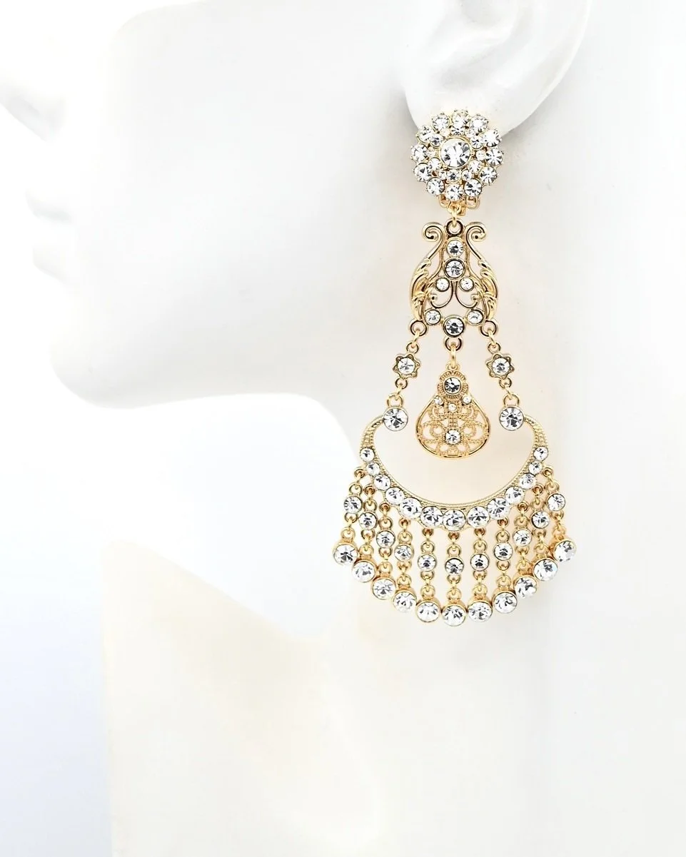 Gold Crystal Linear Circle Chandelier Earrings ( Clip or Pierced)
