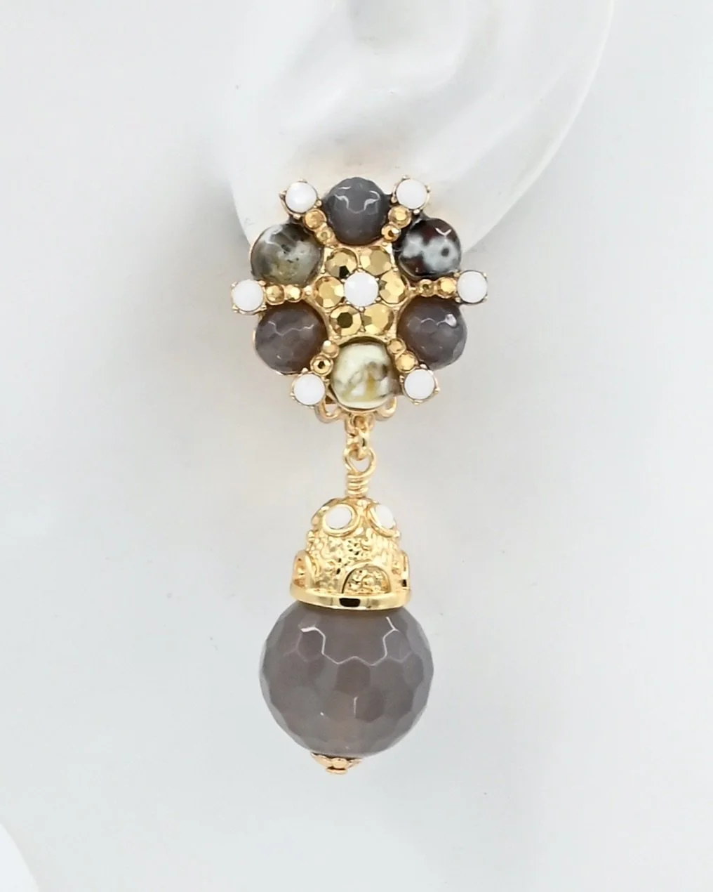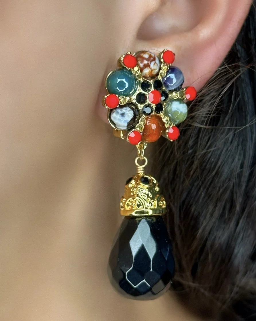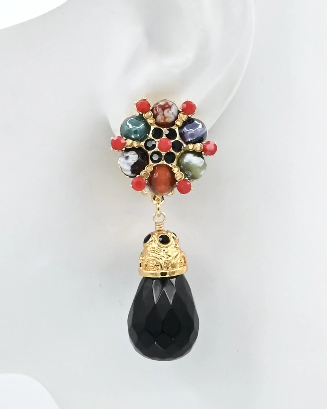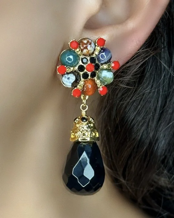 *Earrings available in stone color : 1) Gold/Ruby 2) Gold/Amethyst 3) Gold/Amber 4)Gold/ Emerald 5) Gold/ Cobalt blue 6) Gold/ Red Matrix
