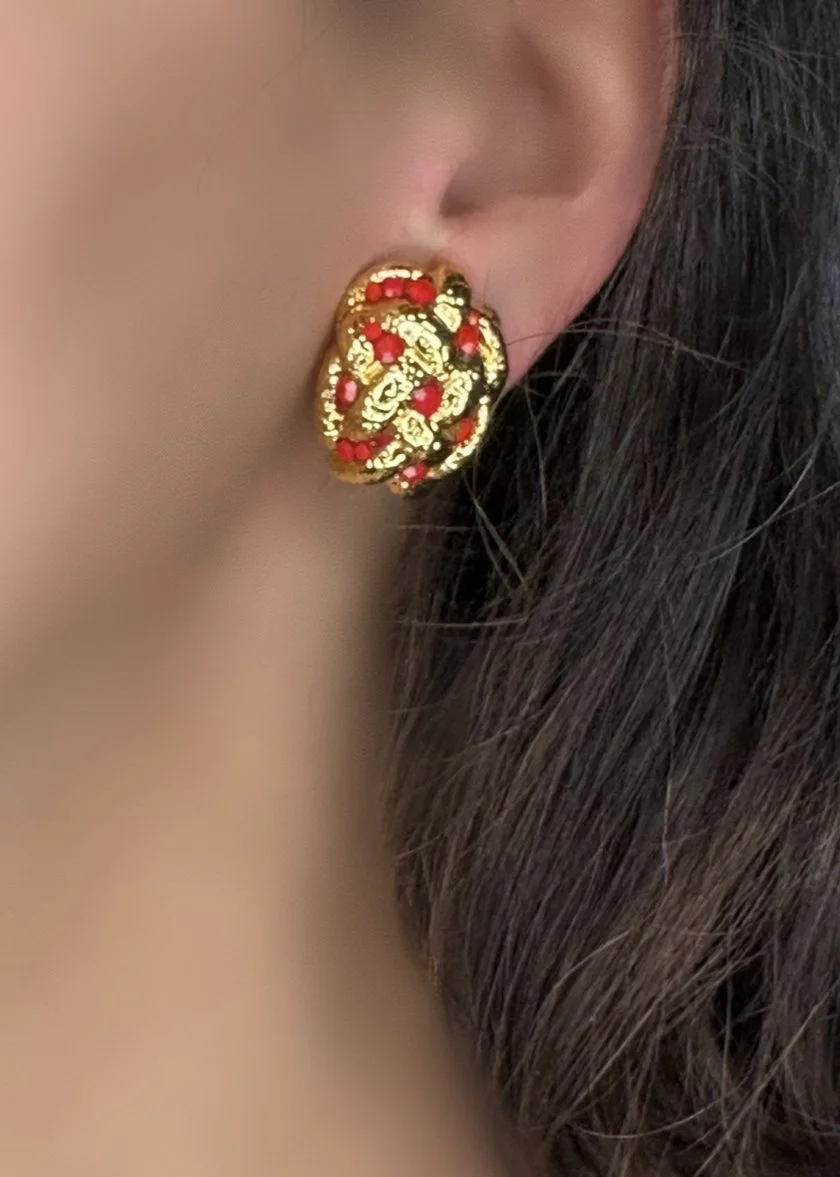 Categories: All Necklaces Earrings Earrings Pierced Bracelets Evening All / Earrings Gold Braided Hoop Clip Earrings With Red Glass Cabochon Stones $140.00 Gold/Red Gold/Custom Add To Cart Added! Red Bezeled Cabochon Clip With Etched Teardrop Earrings $205.00 Add To Cart Added! Gold Etched Domed Clip With Bright Opaque Red Drop Earrings $185.00 Add To Cart Added! Red Opaque Bezel Cabochon Clip With Bead Drop Earring ( Silver or Gold ) $225.00 24 Karat Gold Plate Rhodium Silver Plate Add To Cart Added! Red Coral On Gold Starburst Clip Earrings (Button Or With Drop ) from $275.00 Select Button Or With Drop Clip Button Alone Clip With Detachable Drop Add To Cart Added! Mixed Red And Lite Coral Lotus Blossom Chandelier Clip Earrings (Clip Or Pierced) $350.00 Clip Pierced -Post Back Add To Cart Added! Gold Etched Domed Clip With Bright Opaque Red Beaded Tassel $385.00 Red Custom Add To Cart Added! Bright Opaque Red Beaded Tassel Earrings With Bezeled Cabochon Clip Top $395.00 Add To Cart Added! Large Gold And Red Beaded Hoop Chandelier Earrings ( Clip or Pierced) $495.00 Clip Pierced Add To Cart Added! Opaque Red Starburst Clip Button Earrings $275.00 Red Custom Add To Cart Added! Woven Design Clip Button Earrings With Red Stones ( Gold or Silver Plated ) $175.00 24 Karat Gold Plated Rhodium Silver Plated Add To Cart Added! Red Fan Chandelier Clip Earrings ( Pierced) $445.00 Add To Cart Added!